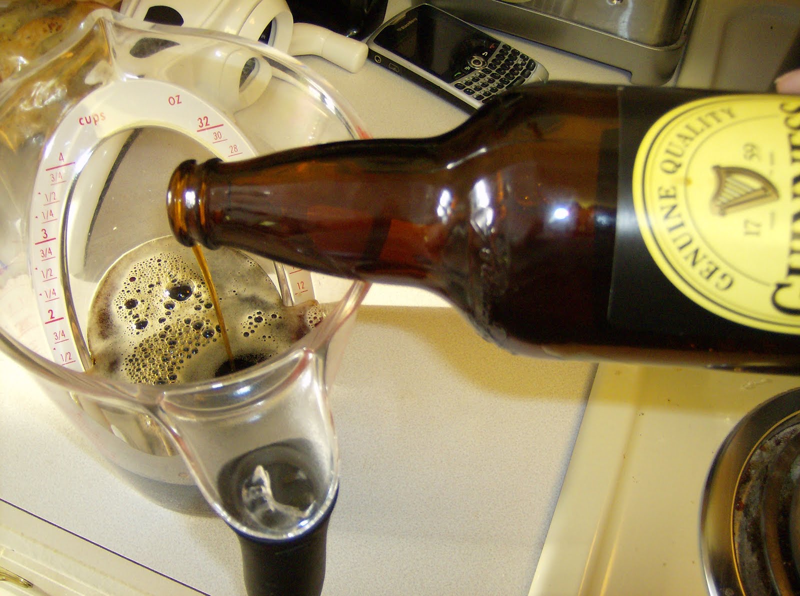 Measure your Guinness (if you're like me, you get a bigger bottle and drink half...just make sure you save 12 oz. for the stew) and add to the stock pot.